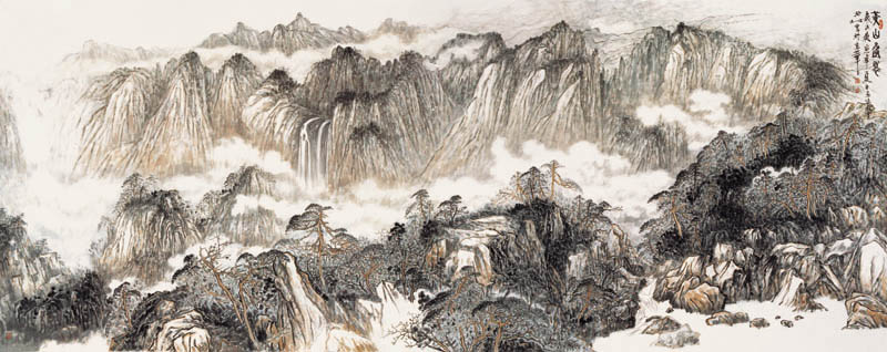 而難能可貴的是荊兆林國畫作品,思路開闊,畫境宏大,人物、山水、花鳥無一不精,合之水乳交融,神意貫通,分之而又處理起來卻又千秋各異,特色靈動。從他的作品中不難看出,他的繪畫語言極富個性,強(qiáng)調(diào)在傳統(tǒng)的基礎(chǔ)上有所創(chuàng)新。他的工筆畫蘊(yùn)含著唐、宋、明詩的韻味。而在人物的刻畫上卻汲取了現(xiàn)代造型觀念,在線的組織上更注重把刻畫形體與表現(xiàn)線的節(jié)奏、韻律有機(jī)地結(jié)合起來。同時他還把山水畫中的皴法、擦法、點法、潑發(fā)運用到畫面中,大大豐富了繪畫語言。他的水墨畫,在黑、白、灰和點、線、面的對比中,追求平面構(gòu)成的韻律美,給人以美的享受和心靈的撞擊。
