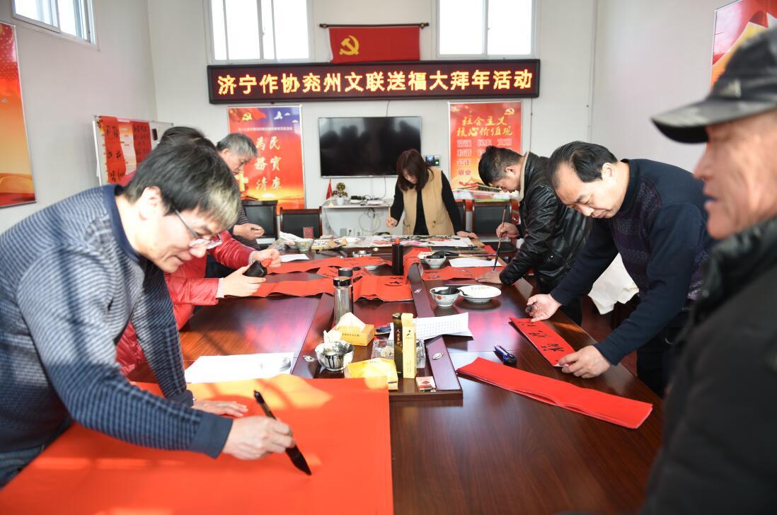 近年來,濟寧市作協(xié)認真貫徹習近平總書記在文藝座談會上的講話及大力弘揚中國優(yōu)秀傳統(tǒng)文化指示精神,連續(xù)多年開展送文化下鄉(xiāng)、組織我市書畫名家開展公益性文化活動,為群眾義寫春聯(lián)、送書畫,這已經(jīng)成為我市作協(xié)精神文明建設的一項重要內容,得到了百姓的好評。今年,作協(xié)根據(jù)中央、省市委系列會議精神,把“助力鄉(xiāng)村振興 建設幸福家園”作為市作協(xié)2019年春節(jié)期間一系列活動的主題,將陸續(xù)開展多種形式的走基層活動,為我市全面實施鄉(xiāng)村振興戰(zhàn)略鼓與呼,為全市人民決勝小康社會助力,為早日把濟寧建設成為淮海經(jīng)濟區(qū)中心城市而努力奮斗。