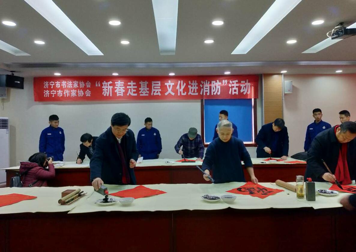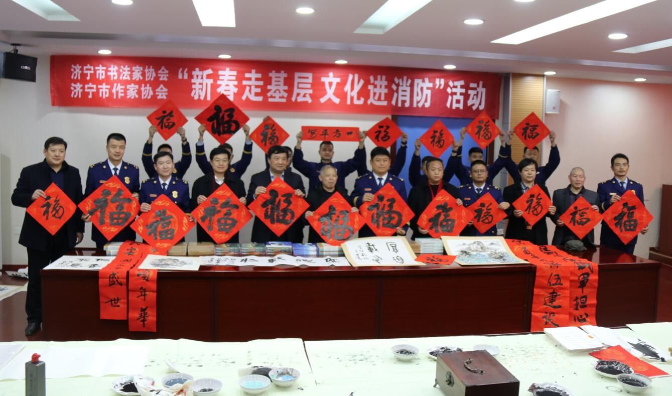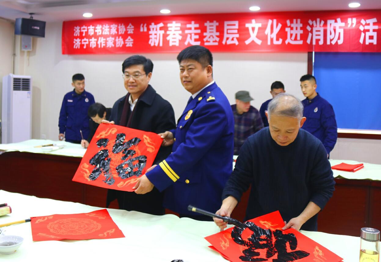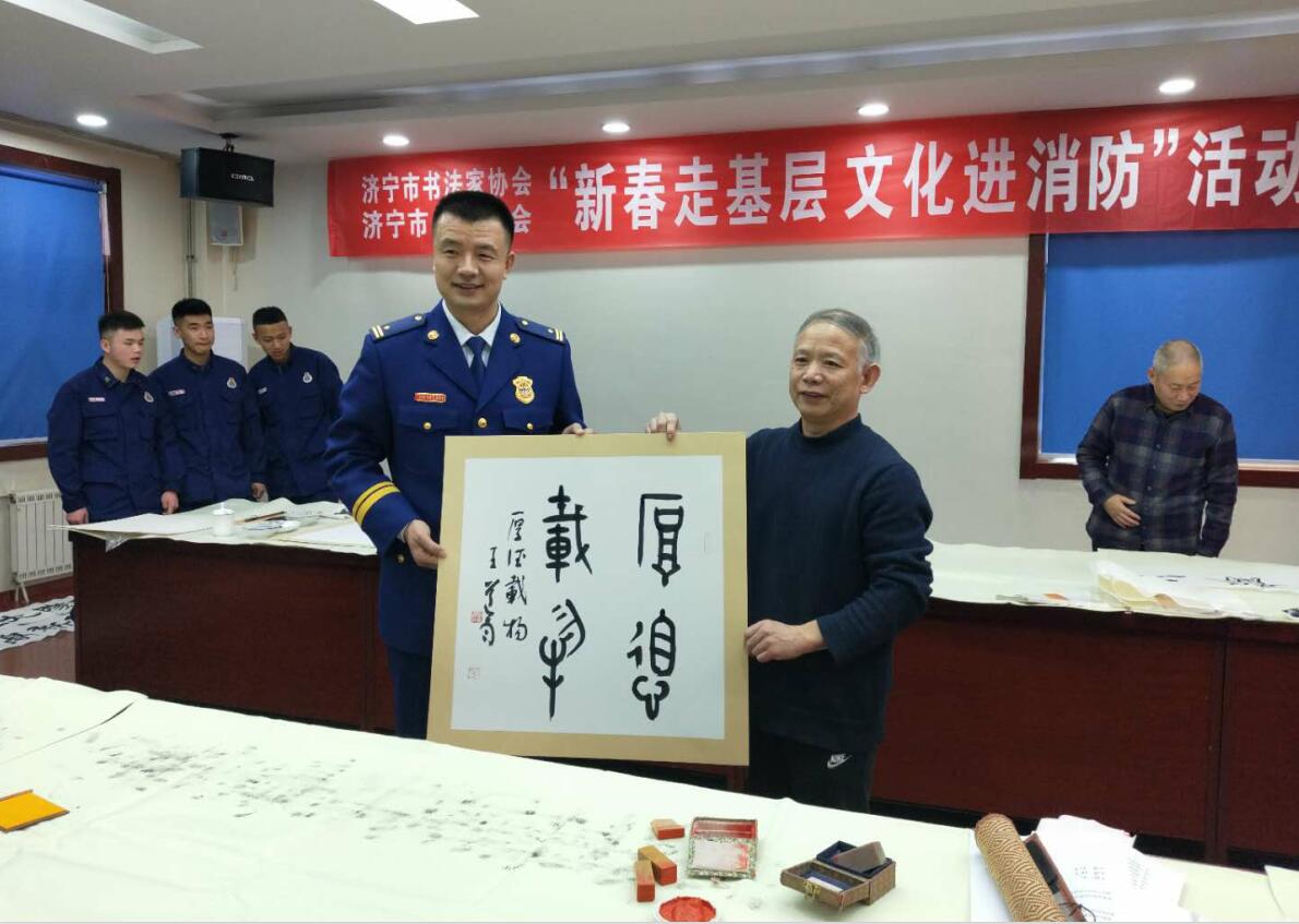 128日下午,在臘月小年到來之際,由濟寧市書法家協(xié)會和濟寧市作家協(xié)會聯(lián)合組織的“新春走基層 文化進消防”活動在中國作家協(xié)會會員、濟寧市作協(xié)主席張建魯帶領(lǐng)下走進高新區(qū)消防救援大隊,看望慰問大隊全體指戰(zhàn)員,書畫家們現(xiàn)場創(chuàng)作,為大隊指戰(zhàn)員帶來了書法文化的饕餮盛宴,送上了新春祝福。
