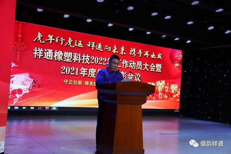 伴隨著雄壯的國(guó)歌聲祥通橡塑科技2022年工作動(dòng)員大會(huì)暨2021年度先進(jìn)表彰會(huì)議開(kāi)幕。