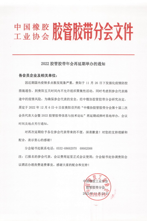 2022膠管膠帶年會延期舉辦的通知