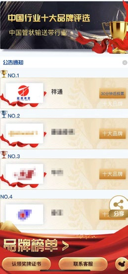 本刊訊 :品牌是一個企業(yè)無形的資產,也是一個公司實力與地位的象征。臨近年末歲尾,山東祥通橡塑科技公司喜報頻傳:繼祥通牌輸送帶榮獲“山東省優(yōu)質產品”后,祥通品牌又榮獲“2019年度中國管狀輸送帶十大品牌第一名”。2020 年 1 月 21 日,中國品牌網公布了由該網主辦經過近兩個月面向全國消費者和廣大廠商的網上投票麟選出的中國管狀輸送帶行業(yè)的最終評選結果,祥通品牌從近100 個參選品牌中脫穎而出,以638797 票榮獲“中國管狀輸送帶行業(yè)十大品牌第一名”。還是常言說的好:金杯銀杯,不如老百姓的口碑。 這標志著祥通品牌建設又邁上一個新的臺階。