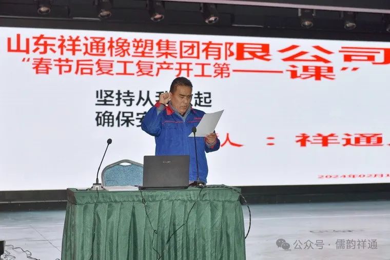 人勤春早爭朝夕,策馬揚(yáng)鞭開新局。大年初七開工第一天,為強(qiáng)化安全生產(chǎn)意識,進(jìn)一步增強(qiáng)安全生產(chǎn)工作的責(zé)任感、緊迫感,祥通集團(tuán)上下全力做好安全生產(chǎn)“開工第一課”,進(jìn)一步強(qiáng)化全員安全意識,提升安全履職能力,為全年安全生產(chǎn)工作順利開展奠定基礎(chǔ)。2月16日上午,集團(tuán)公司2024年春節(jié)安全生產(chǎn)“開工第一課”培訓(xùn)會在研發(fā)樓六樓多功能會議室舉行。集團(tuán)公司領(lǐng)導(dǎo)班子成員和各部門、車間負(fù)責(zé)人及全體員工參加會議并共同觀看了安全警示教育片。